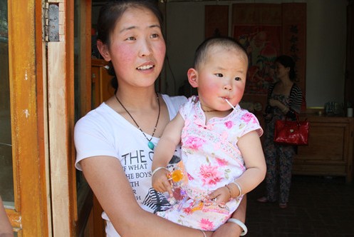 图9:26岁的复明患者赵佩兰抱着她的女儿。