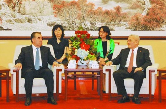 中国石油集团董事长周吉平与塔吉克斯坦共和国总统埃莫马利·拉赫蒙举行友好会谈。(记者常正乐金添摄)