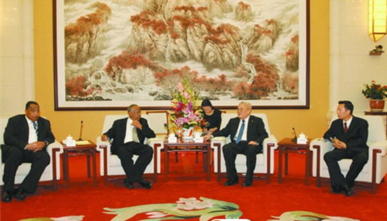 6月28日,来中国参加第二届中苏执政党高层对话的苏丹全国大会党代表团,在苏丹全国大会党副主席、总统助理纳菲阿·阿里·纳菲阿的率领下访问中国石油,受到集团公司董事长周吉平的热烈欢迎。