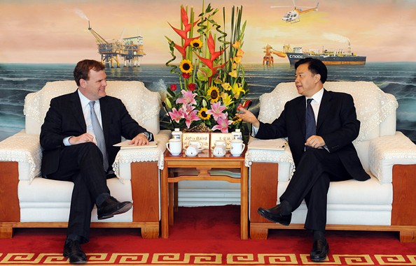 7月3日下午,总公司董事长王宜林在北京中国海油大厦会见了来访的加拿大外交部部长约翰·贝尔德一行,双方就中国海油在加拿大投资事宜交换了意见。
