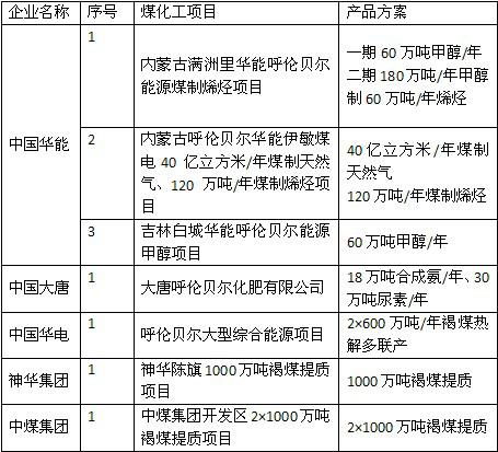 据大智慧通讯社不完全统计,伊敏煤化工基地的一些项目如下: