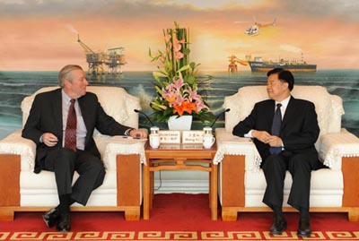 中海油:王宜林会见哈里伯顿公司董事长戴夫·勒萨(图)