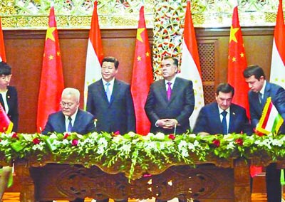 在习近平主席和拉赫蒙总统的共同见证下,签署了关于保障D线塔国段建设运营的两个协议。