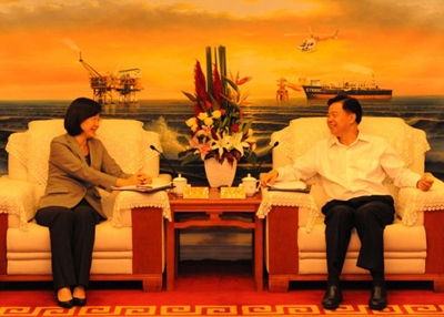 9月23日下午,总公司董事长、党组书记王宜林在北京中国海油大厦会见了来访的惠州市委常委、环大亚湾新区党工委书记、大亚湾区委书记张瑛一行,双方就推进重点项目建设、进一步深化合作等事宜深入交换了意见。