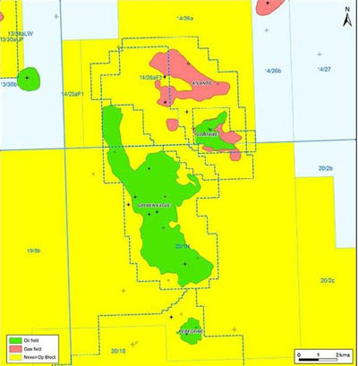 公司的全资子公司NexenPetroleumU.K.Ltd.(“NexenUK”)是GoldenEagle区域开发项目的作业者,持有该项目36.54%的权益,MaerskOilNorthSeaUKLtd.(31.56%)、SuncorEnergyUKLtd.(26.69%)及EdinburghOilandGasLtd(5.21%)持有剩余的权益。