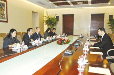 汪东进会见阿根廷国家石油公司总裁加卢西奥(图)