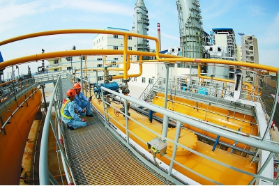 今年6月、7月,新建1号、2号锅炉相继产出合格超高压蒸汽输送到裂解装置。8月,两台锅炉相继完成性能测试,并转入正常生产。两台新建锅炉从试运到投运,烟气脱硫、脱硝等环保装置运行高效平稳,外排烟气中氮氧化物、二氧化硫含量稳定控制在100毫克/立方米以内。