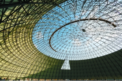 透过新建煤仓顶,可见蓝蓝的天上白云飘。