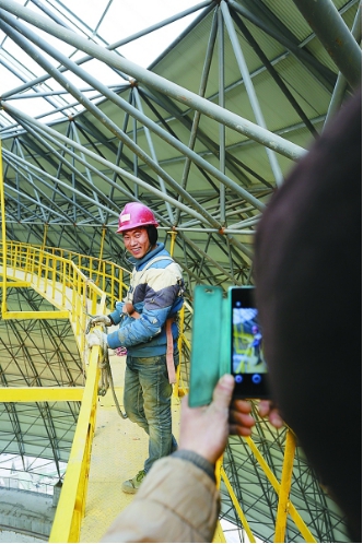 施工完毕,参建小伙儿在煤仓顶部自豪地留影。