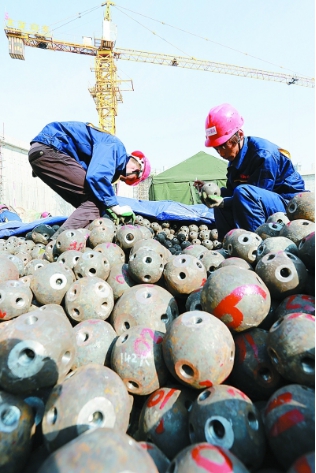 施工人员严格挑拣框架连接球。