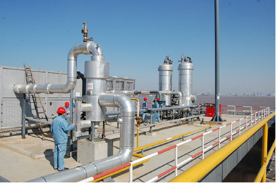 上海石化在化工码头投建的油气回收装置,可以防止装卸中油气散入大气。
