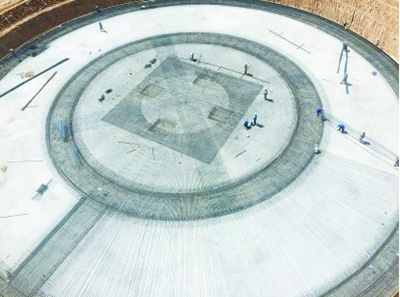 7月1日,炼化工程集团南京工程承建的陕西延长石油延安煤油气资源综合利用装置污水处理设施,直径62.8米A/O池开始池底浇筑,拉开了延长能化污水处理设施项目大型池浇筑的序幕。由于该池设计规模很大,要求很高,在池体应力计算方面,项目部面对较大的难题。设计之初,设计人员对国内多个污水处理设施进行了调研,通过不断地调整计算,圆满完成出图交付施工的工作。图为施工现场。