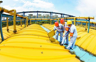 图为扬子石化污水处理厂技术人员检查新加盖污水池运行情况。李树鹏摄