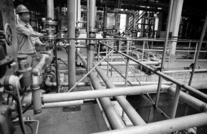 巴陵石化“硫铵蒸发冷凝液再次利用”项目日前建成投用。该项目通过区域整合,“打破围墙”,每年可为公司生产运行至少腾出5万立方米污水处理的环保容量,促进达标排放。图为己内酰胺事业部员工在项目现场查看运行情