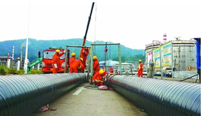 图为9月20日,施工人员对管线进行预制。汪作庆摄