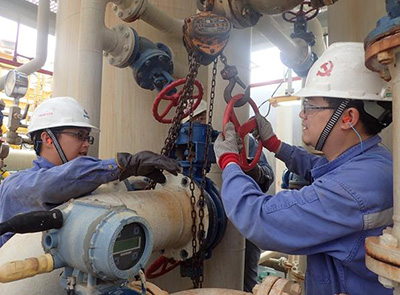 3月5日,有限公司湛江分公司“南海奋进”FPSO(浮式生产储卸油装置)生产党小组快速更换气浮选器旁通阀门,确保生产水达标排放。气浮选器是“南海奋进”FPSO两套生产水处置设备之一,日处理生产水8000立方米,是文昌13-1/2油田油气水处理达标排海的重要屏障。生产党小组通过党员轮值制度,24小时守护生产水处理设备,确保每一滴生产水达标排放。