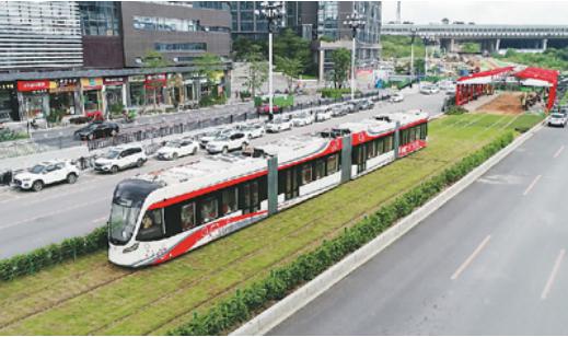 图为广州黄埔区有轨电车1号线正在进行单车调试。孟凡瑞 摄