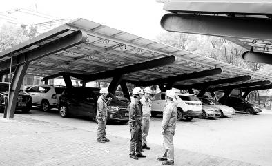 截至4月16日,巴陵石化首个光伏发电站——水务部车棚光伏发电站累计发电2万千瓦时,其中今年发电1.7万千瓦时。该发电站去年底建成并网,面积近700平方米,年发电量设计为13.8万千瓦时,可作为办公和相关装置用电。同时,车棚可停放40台小型车。图为4月16日,电气中心管理人员查看发电站运行情况。