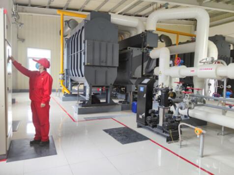 [中国石油新闻中心2021-07-19] 7月14日,辽河油田锦州采油厂欢三联合站“清洁能源示范基地”地热项目生产车间中,员工正在巡检。