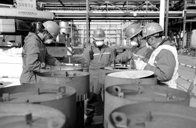 2月19日起,中安联合对净化装置Ⅱ系列进行消缺,提升装置运行水平。净化装置在消缺过程中,严控现场风险,规范检修作业票证管理,认真执行受限空间、吊装等作业安全管理规定,保证检修作业安全。图为2月23日,检修人员装填吸附剂。