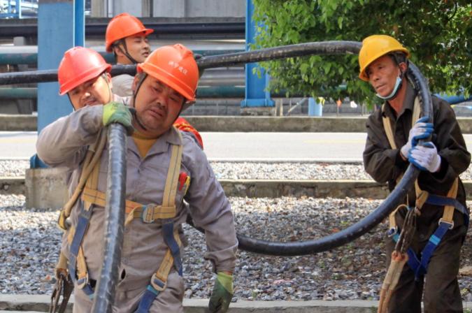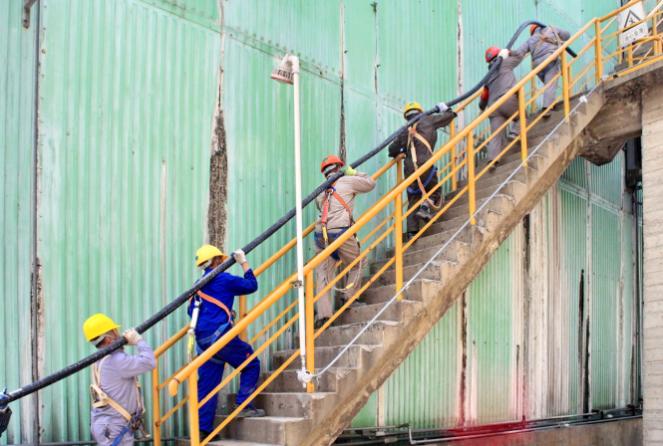 图为3号循环水1号凉水塔风机电机电缆抢修敷设时情景