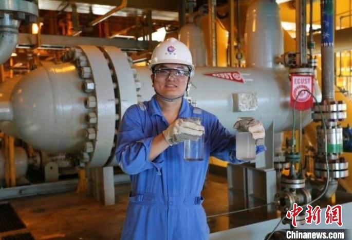 但是,在崖城13-1平台附近,却常常能看到水清海蓝鱼儿成群结队的场景。这里的排海生产水中的油是怎么“捞”干净的呢?原来,这种让原本浑浊的含油污水,变得清澈透明可直接排海的“神奇”水处理技术,就是杨强团队领衔研发的亲疏水组合纤维绿色破乳除油新技术。该技术突破了当前主流化学破乳方法及“三段式”工艺模式,从源头上实现了绿色环保生产,处理后生产水中油含量这一关键指标优于国内、国际相关标准。
