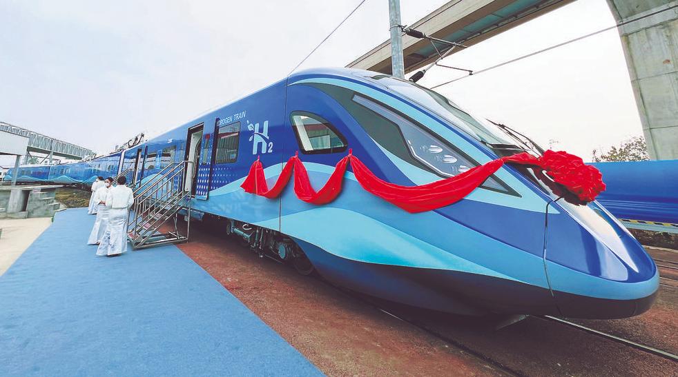 全球首列氢能源市域列车亮相成都[中国石化新闻网2023-01-03]12月28日,由中车长客股份公司联合成都轨道集团共同研制、具有自主知识产权的全球首列氢能源市域列车在成都新津正式下线。列车采用“复兴号”关键核心技术,四辆编组,最高时速160公里,内置“氢能动力”系统,为车辆运行提供强劲持久的动力源,可实现600公里超长续航。