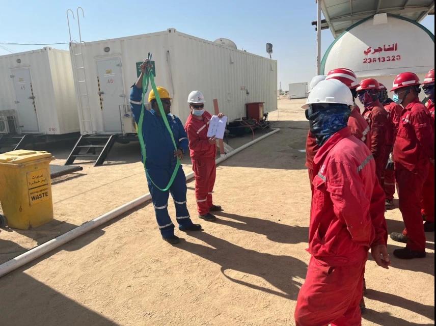 本次活动按照每周一个主题,对基层队进行了吊装作业安全与防护等相关培训,同时邀请甲方监督参与活动,结合科威特石油公司(KOC)有关程序规范日常管理。(赵锋洛高风)
