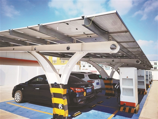 设有5台120千瓦双枪直流充电桩充电桩利用光伏板及储能系统提供的电能,为客户提供优质高效的服务,兼容市场上95%以上的新能源车辆。采用快速充电设备,一辆轿车充满电大约需要30分钟。