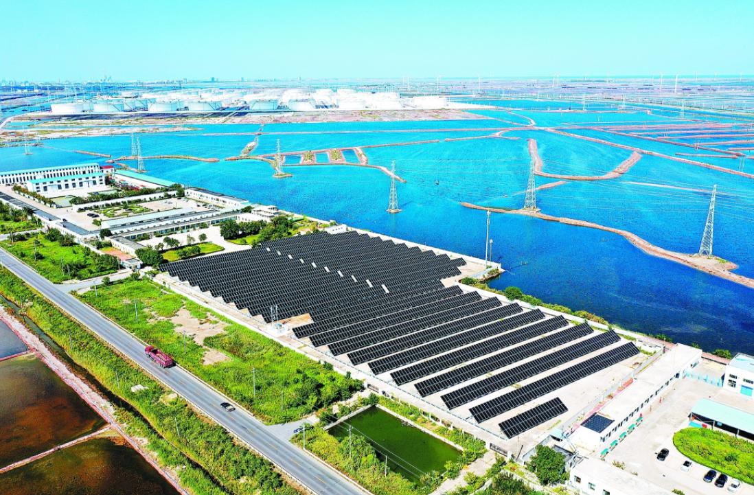 胜利油田海洋采油厂把光伏发电作为用能结构调整的重要抓手,因地制宜利用办公区、废弃厂房等场所合理规划可用资源,推进项目建设,助力绿色发展。目前,该厂供应站周边区域光伏项目并网一年,累计发电340余万千瓦时,有效减少二氧化碳排放。图为近日该光伏项目现场。