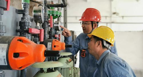 “双节”假期临近,石家庄炼化组织各专业,全面排查安全隐患,重点检查设备设施完好状况、承包商直接作业环节等,确保装置安全平稳运行,保障节日油品市场供应。图为9月24日水务运行部安全检查组在污水回用装置检查双膜设备。刘海霞摄王叶敏文