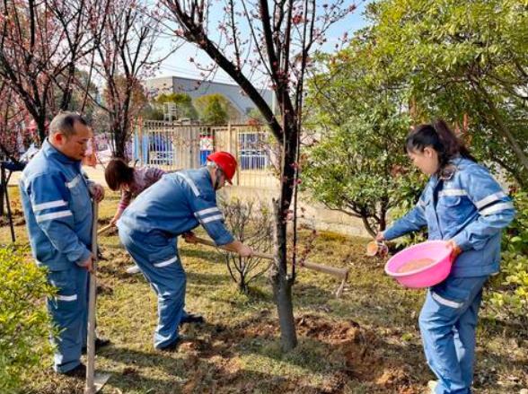 图2:3月5日,贵州黔西南石油晴隆油库开展“拥抱春天创建绿色油库”植树节主题党日。大家挥铁锹、挖树坑、栽新苗,并对之前种植的树苗进行养护。肖洋摄