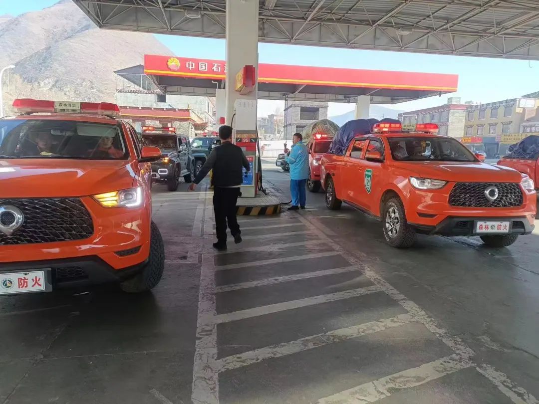救援车辆正在跑马山加油站加油。三兰拉姆 摄