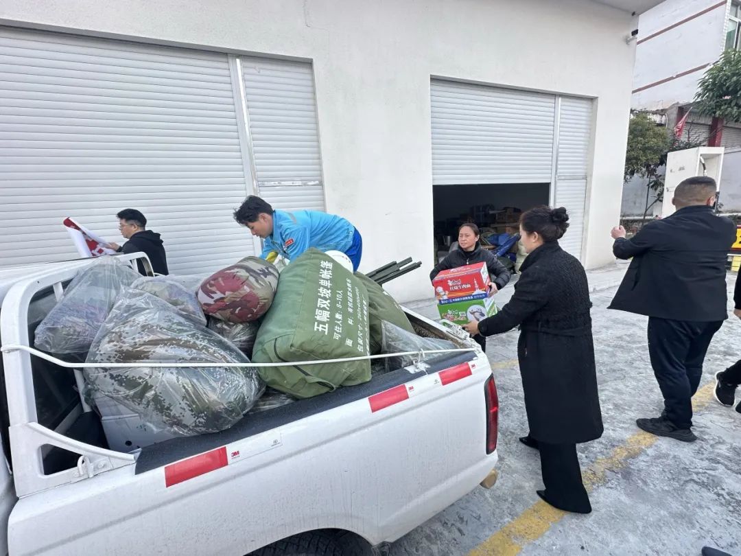 甘孜分公司员工紧急筹备帐篷、睡袋、蔬菜、水果以及卫星电话等应急物资赶赴现场。李悦 摄