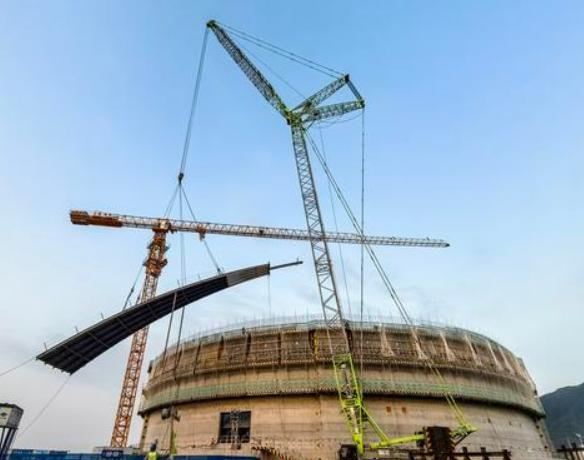 3月16日,四建储运工程公司历时5天,完成中国海油宁波“绿能港”三期项目首座27万立方米LNG储罐二标段1号罐穹顶吊装,达到LNG储罐安装工程的重要节点。该公司承担3座27万立方米LNG储罐的安装工作,严格落实现场安全监督,确保穹顶片吊装平稳有序。图为穹顶吊装现场。