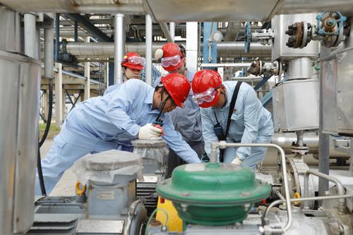 夏季来临,中安联合煤化有限责任公司针对季节性高温、潮湿等气候特点,加强装置日常维护,增加特种设备巡检频次,重点检查设备的温度、锈蚀等情况,保障设备安全度夏。图为5月21日员工检查机泵的温度、振动等情况。赵天奇摄