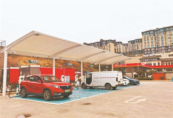 今年年初以来,广西销售公司结合区域政策与实际应用场景,将14家二级单位划分为新能源加快发展区、重点推进区、协同发展区,全力攻坚站外充电场站建设,有序推动城市加油站应建尽建、能建必建,全力构建“油气氢电非”五大业务协同发展新格局。今年上半年,广西销售共建成综合能源服务站28座,其中油电非综合站26座、油气非综合站2座,安装光伏站点42座,为壮乡“减碳添绿”作出贡献。(王剑英/文 普娜/图)重庆销售:百站千桩 共建共营