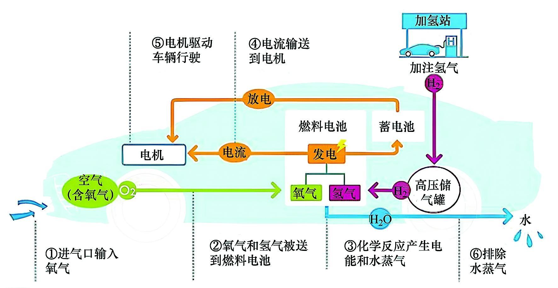 氢燃料电池车工作原理示意图。(资料来源:中氢互联)
