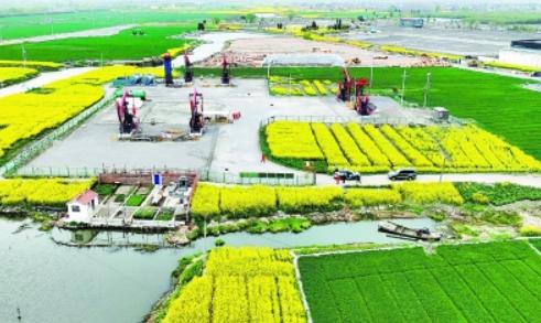今年以来,华东油气分公司积极践行绿色发展理念,加大二氧化碳驱技术研发力度,持续在草中、张家垛阜三段等油藏开展二氧化碳复合驱,打造科学高效的循环减碳模式。目前在17个油藏单元开展二氧化碳复合驱,截至3月底,累计注气4.3万吨、增油0.89万吨。图为3月27日华东油气二氧化碳驱示范基地草舍油田草中1-1平台生产现场。