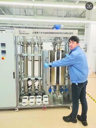 大连院科研人员调试土壤地下水吸附材料评价装置。