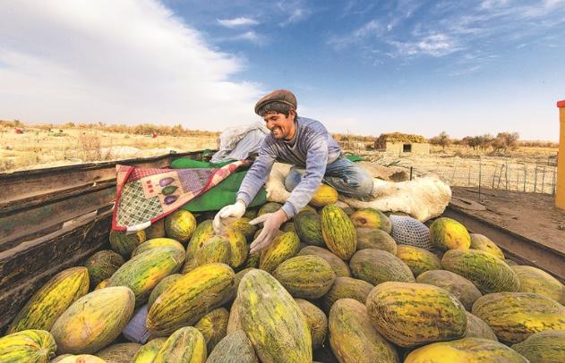 2016年11月11日,塔克拉玛干沙漠腹地亚瓦通古孜村的村民种植的特色甜瓜,通过沙漠公路销往全国各地。