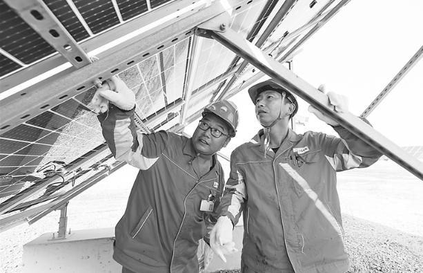 员工正在对光伏项目进行日常巡查。