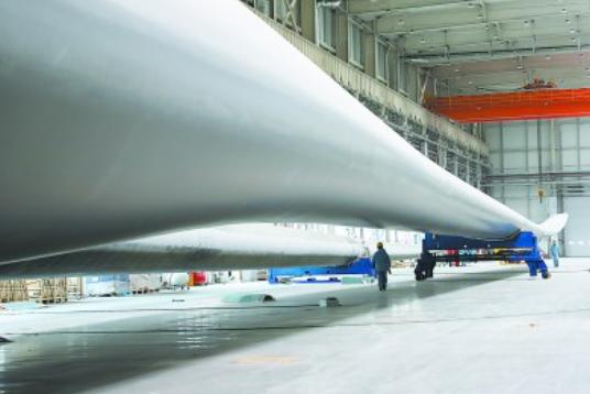 ◀三一重能使用上海石化碳纤维制成的风电叶片。