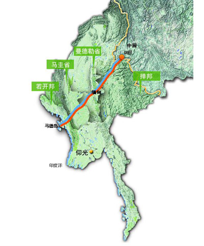 中缅油气管道示意图