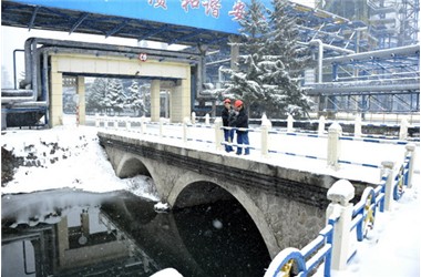 针对连日来的风雪天气,吉林石化公司加大环保监测力度,突出现场监督管理,重点监控污染源等运行情况,保证污水达标排放。图为1月11日,吉林石化炼油厂分析车间水质分析班女工在龙潭川采取水样。