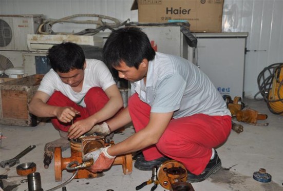 图为职工正在修理流量计
