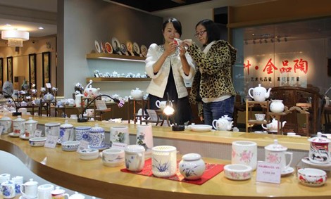图为景德镇陶瓷生产企业利用天然气烧制出的陶瓷产品
