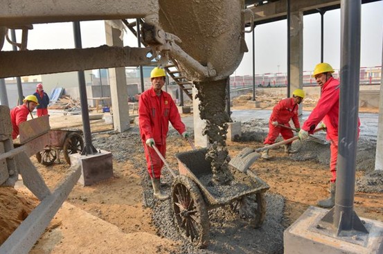 12月5日,中原油田采油五厂正组织施工人员对胡状污水站基础设施做最后收尾工作