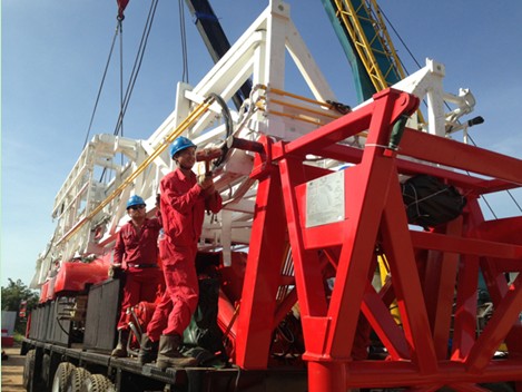 9001队员工正在进行井架安装作业。
