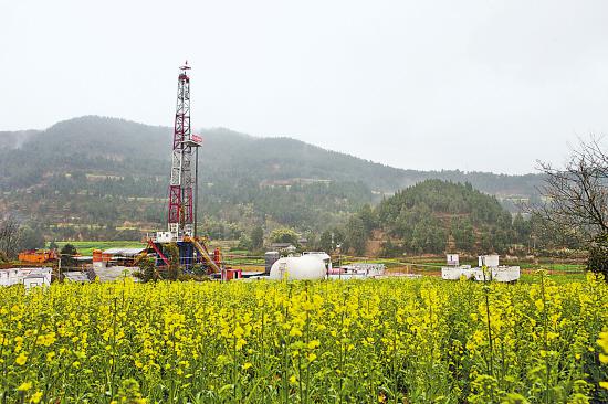 图为5月4日,川庆50660队承钻的富探1井绿色施工现场。